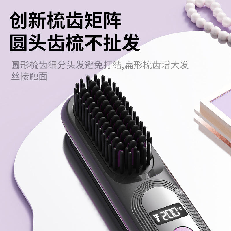 Cepillo Alisador de Cabello con Pantalla LCD, Inalámbrico, Recargable, con Ajustes de Calor para Cabello Seco y Mojado