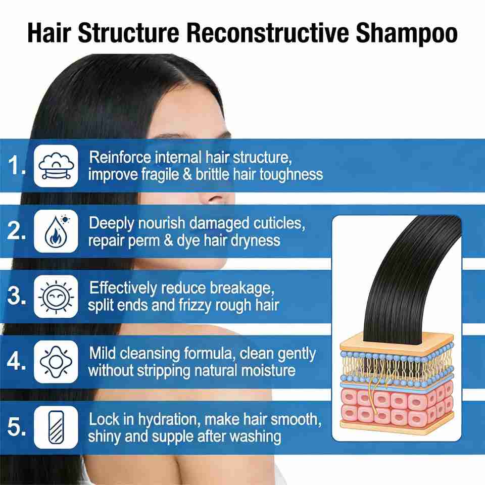 Champú Fortalecedor de la Estructura del Cabello, Reparación Profunda para Cabello Seco y Dañado, Anti-Rotura y Puntas Abiertas, Seguro para el Color, Limpieza Diaria, OEM