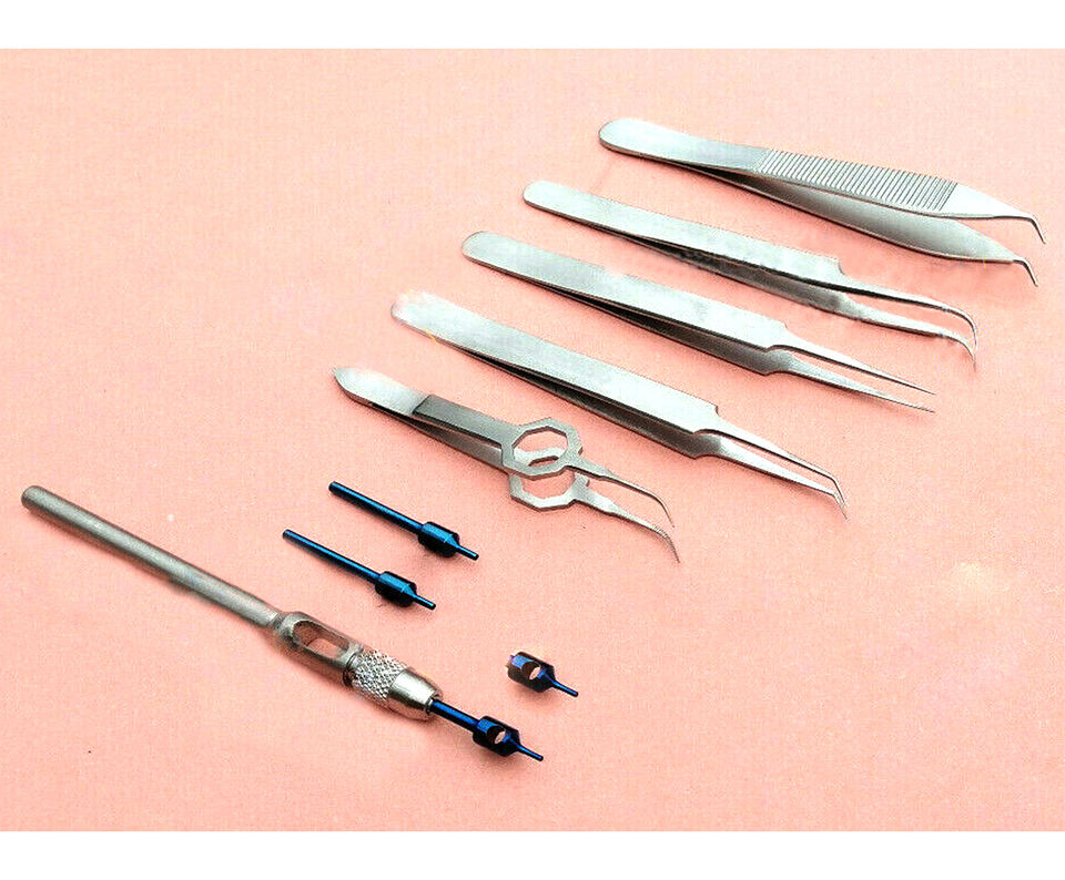 Clip de trasplante de cabello y alicates de perforación de cabello FUE pinzas fórceps instrumentos 9 Uds cirugía plástica instrumentos quirúrgicos