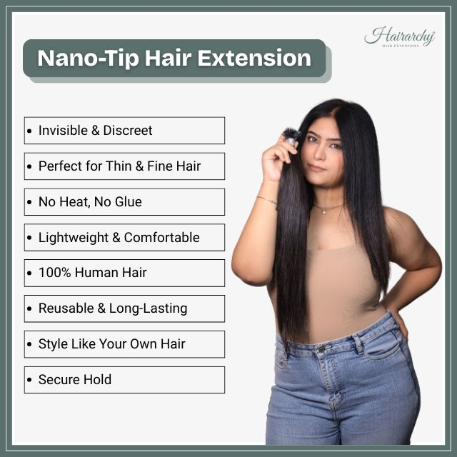 Extensiones de Cabello Hairarchy 100% Remy Indias con Punta Nano, Trama Individual, 30 Pulgadas, Negro Natural, Extensiones de Cabello Humano Premium en Todos los Colores