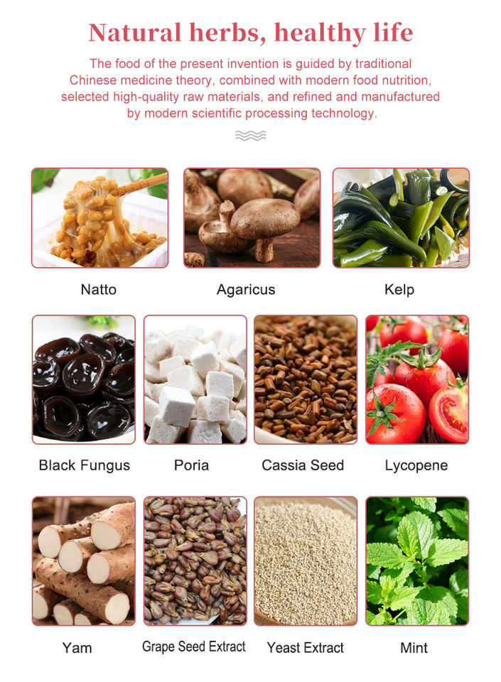 Ingredientes:Natto,Agaricus, Kelp, Hongo Negro, Poria,