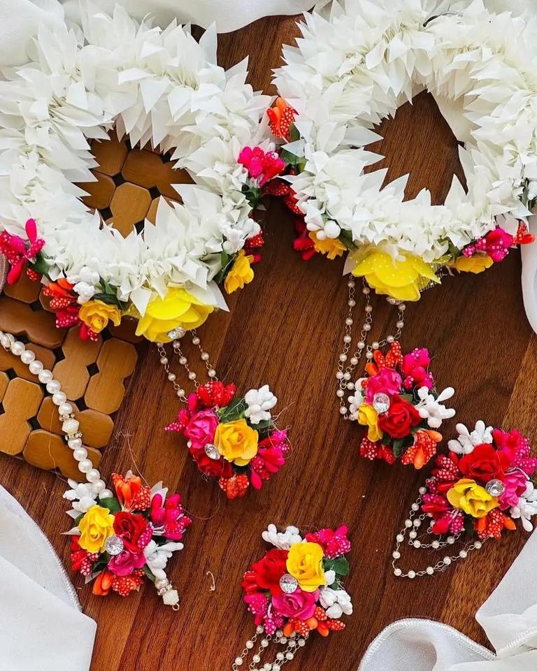 Diseño:Conjunto de joyas de flores de perlas multicapa