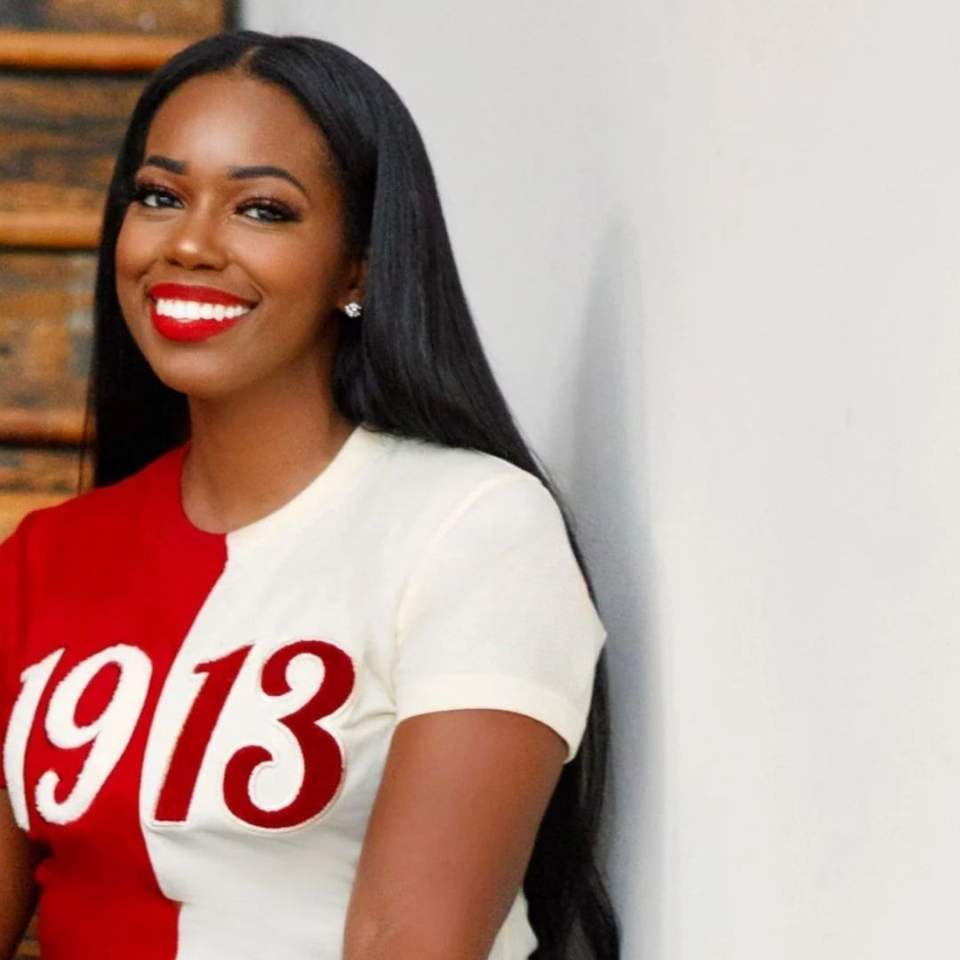 Camiseta bordada de chenilla Media mitad 1913 DST Ropa de hermandad de Mujeres de algodón Premium Ropa griega Delta Camiseta roja blanca de dos tonos