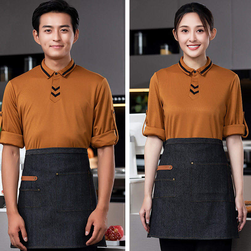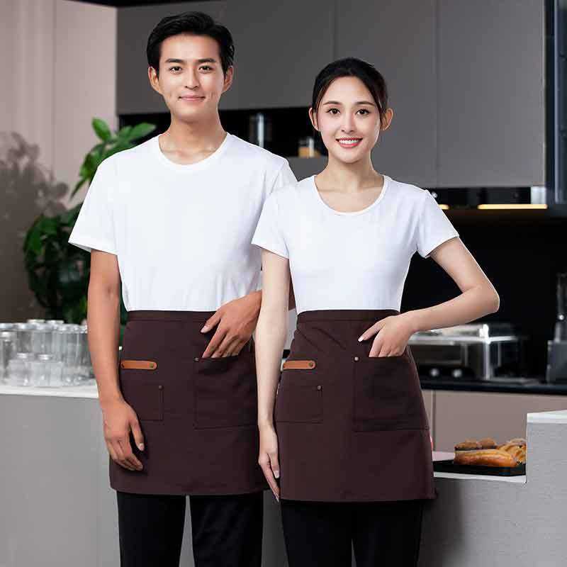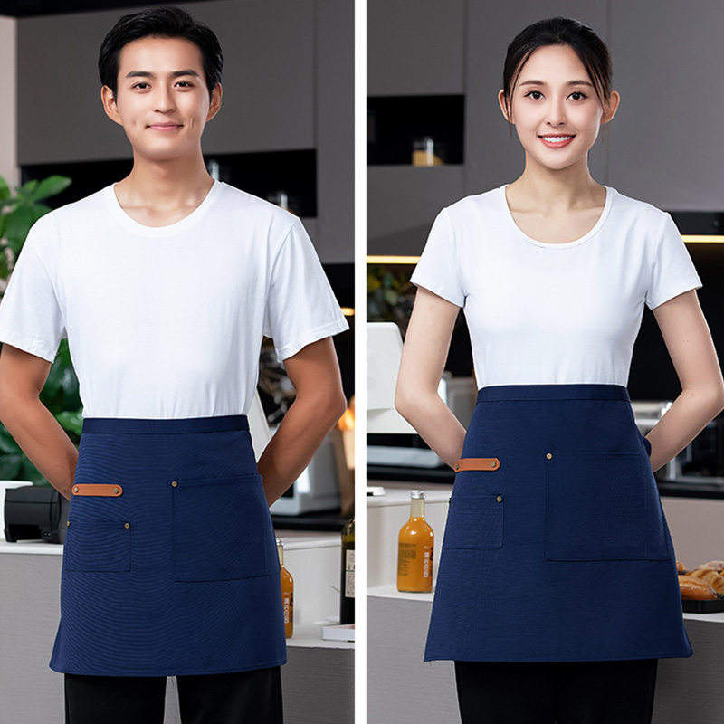 Half Length Chef Apron One Size Denim Black For Restaurant Bar Uniforms