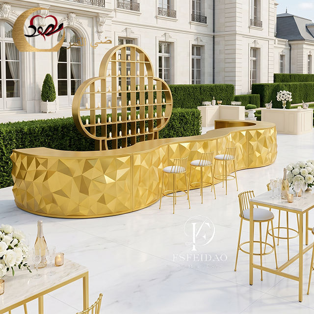 Mesa de Barra Metálica Contemporánea en Forma de Media Luna Dorada para Hotel, Restaurante, Fiestas y Eventos