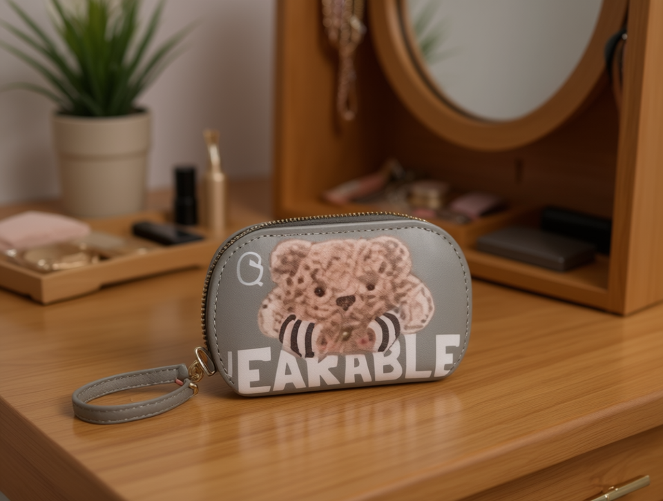 Monedero semicircular de 5 pulgadas con cremallera y correa para la muñeca, mini billetera de microfibra de cuero sintético para mujer