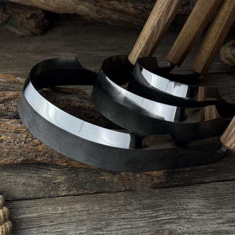 Cuchillos de dibujo medio redondeados Tamaños personalizados o juego Hoja afilada forjada a mano de acero al carbono endurecido, mango de ceniza