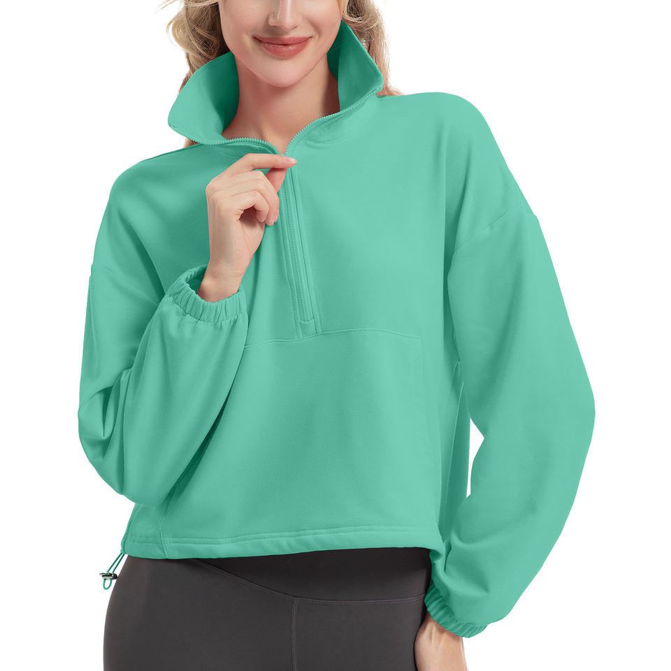 Nombre del producto:Sudadera con capucha y media cremallera para mujer