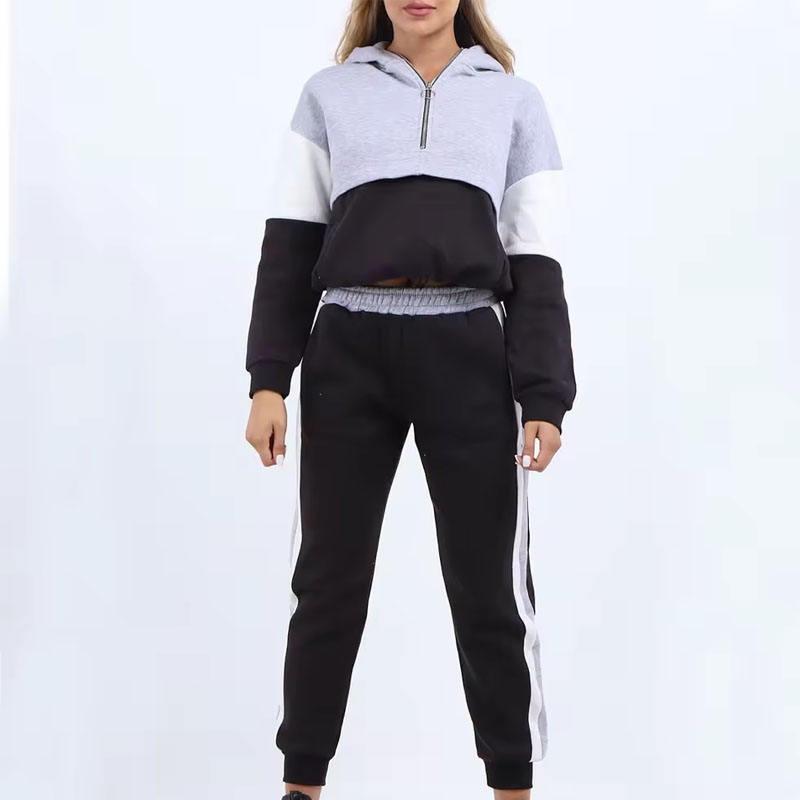 Sudadera con capucha y cuello levantado estilo media cremallera con chándales de mujer informales recortados disponibles a precios de mayorista