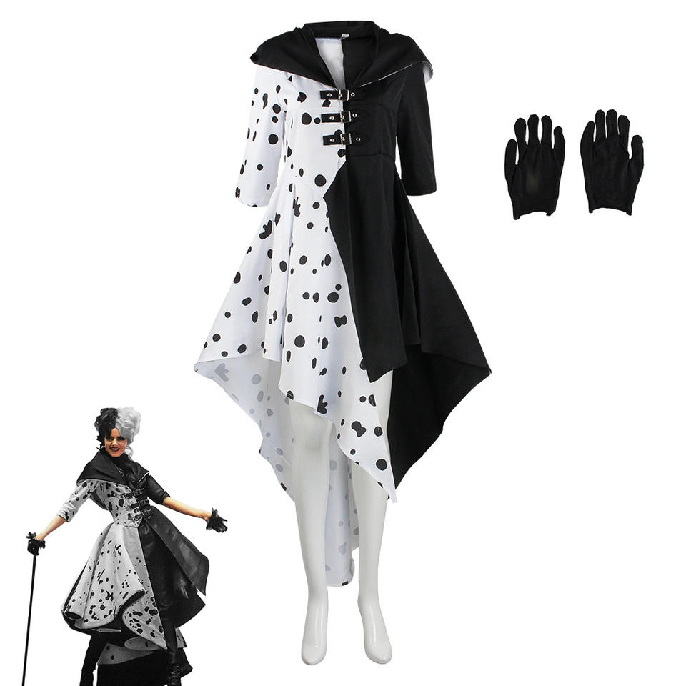 Halloween 101 Loyal Dog Cos vestido blanco y negro bruja Cruella De Vil Spotted disfraz Show disfraz