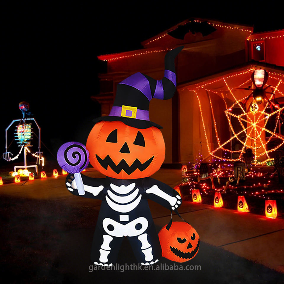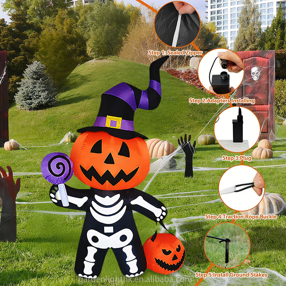 Halloween 5 pies impermeable LED inflable iluminar calabaza esqueleto decoración DC Power IP44