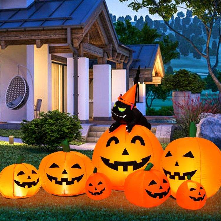 Decoración Inflable de Calabaza de 7.5 Pies para Halloween, Adorno para Jardín con Bruja y Gato Negro