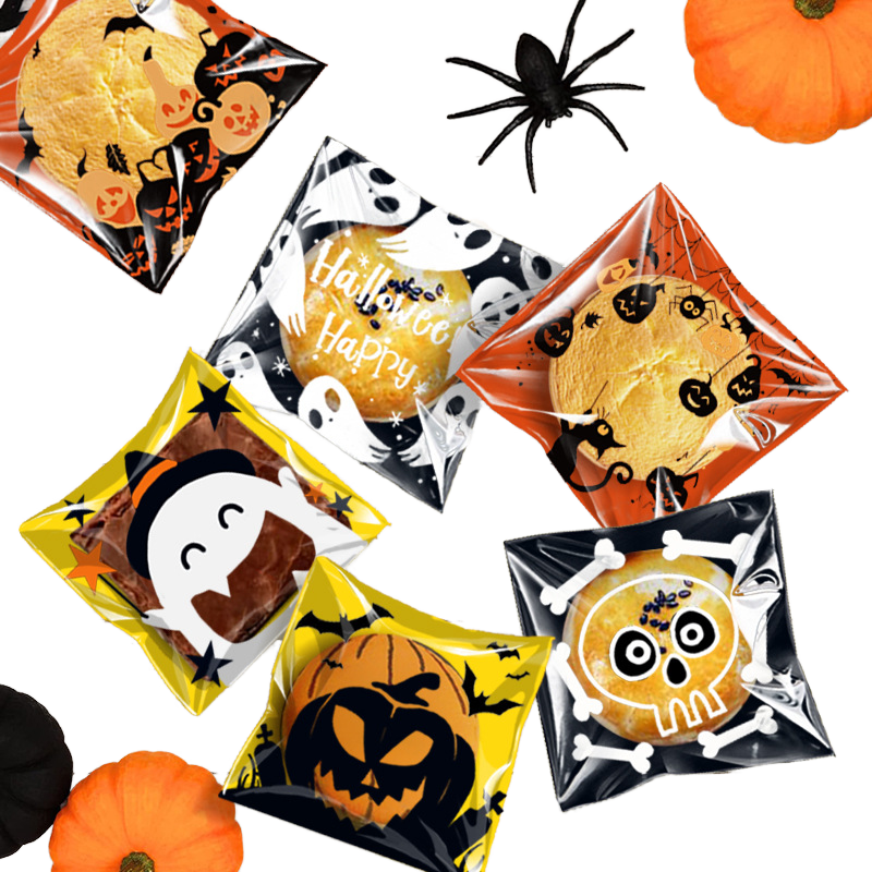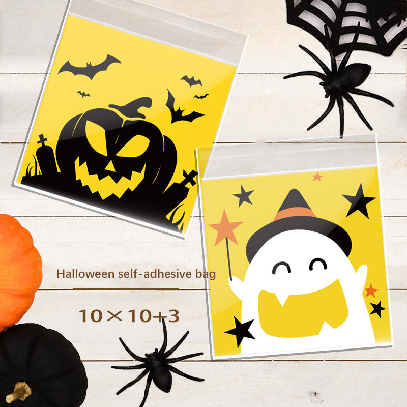 Bolsa transparente con sello autoadhesivo Mylar polivinílico biodegradable para Halloween, bolsa pequeña de plástico transparente para alimentos, impresión flexográfica