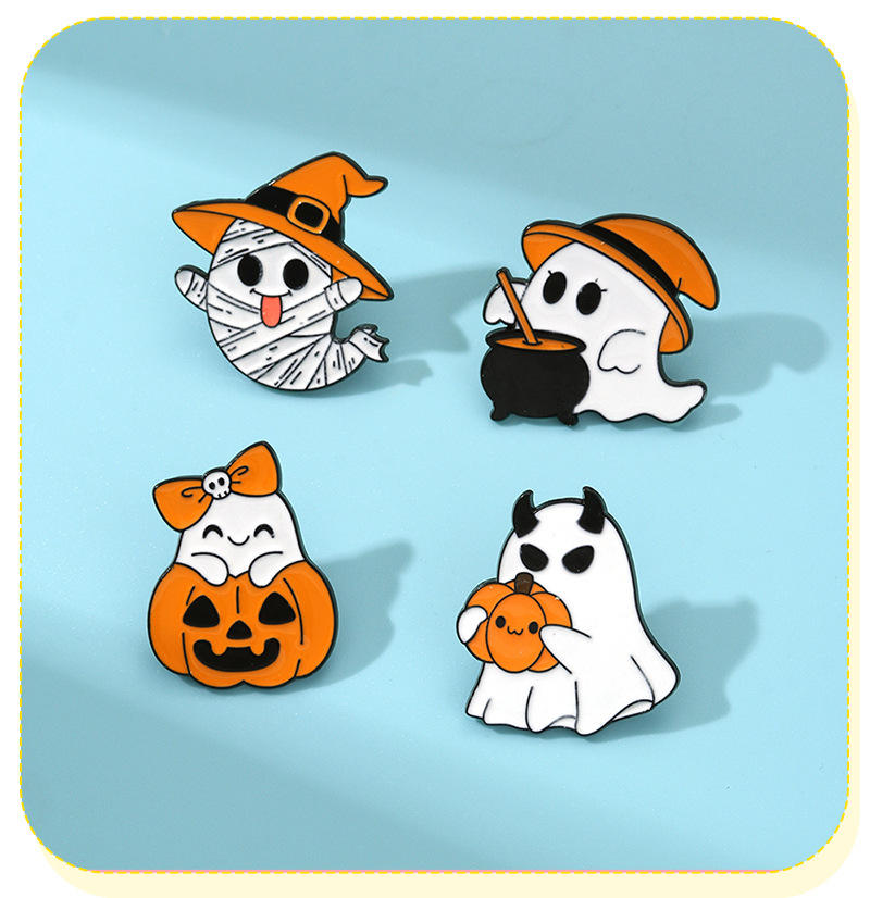 Broche de Halloween, conjunto de fantasma blanco divertido de dibujos animados, insignia de Metal de calabaza, accesorios de Festival, alfileres de Metal para ropa