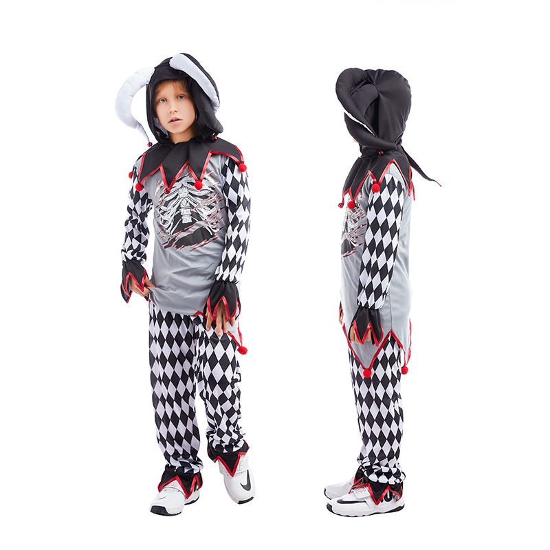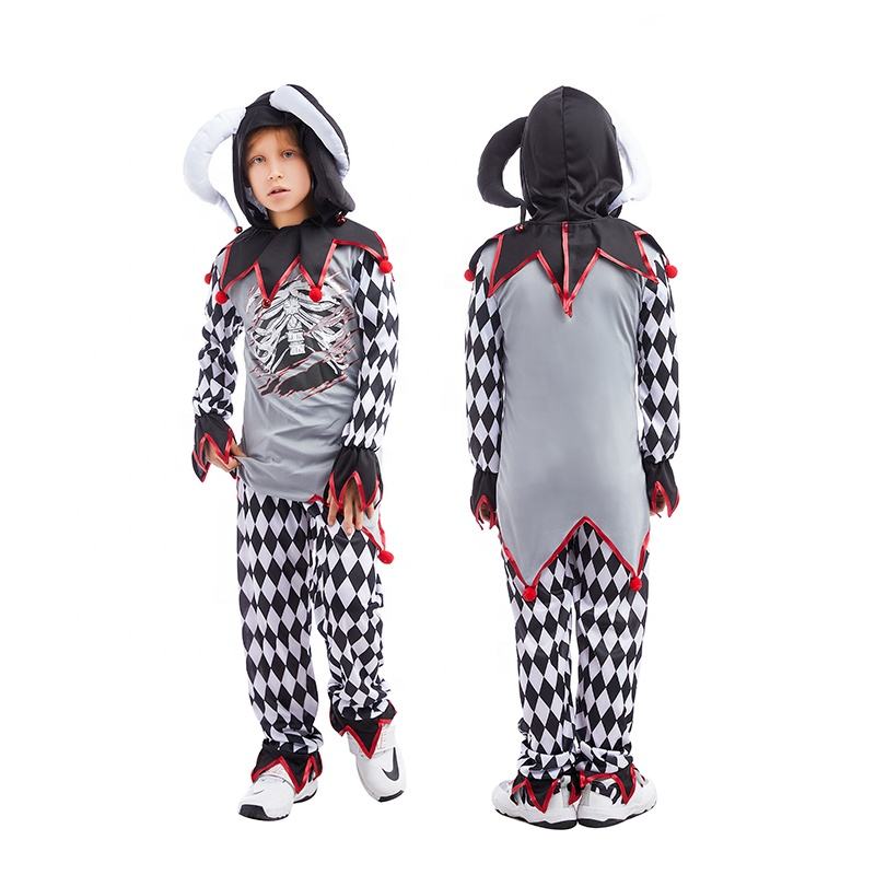 Nombre del producto:Disfraz de esqueleto de Halloween de bufón siniestro para niños