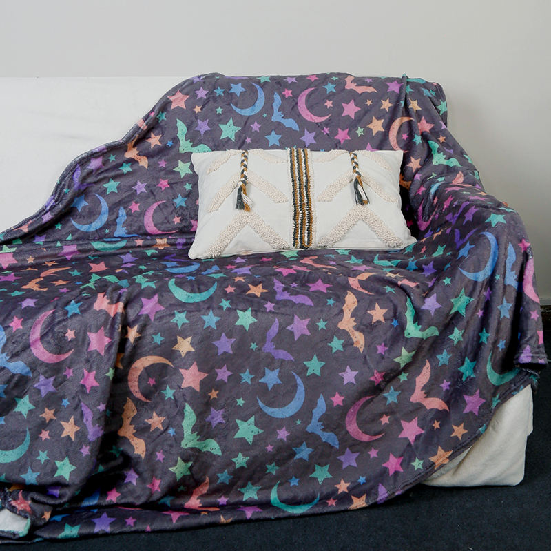 Manta de Felpa Personalizada para Sofá Cama de Halloween, 100% Poliéster, Portátil, Tamaño King, para Sala de Estar, Dormitorio, Cuatro Estaciones