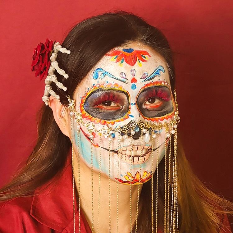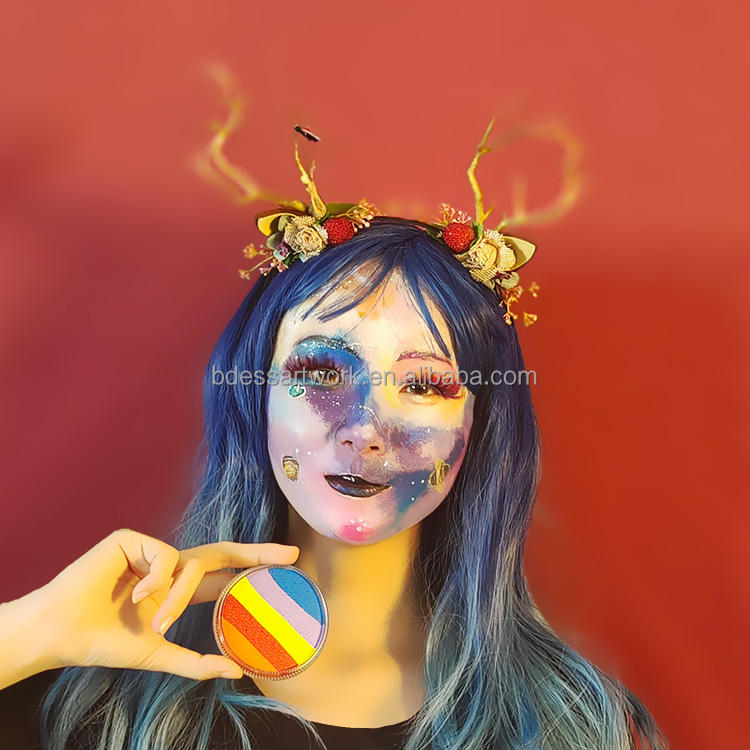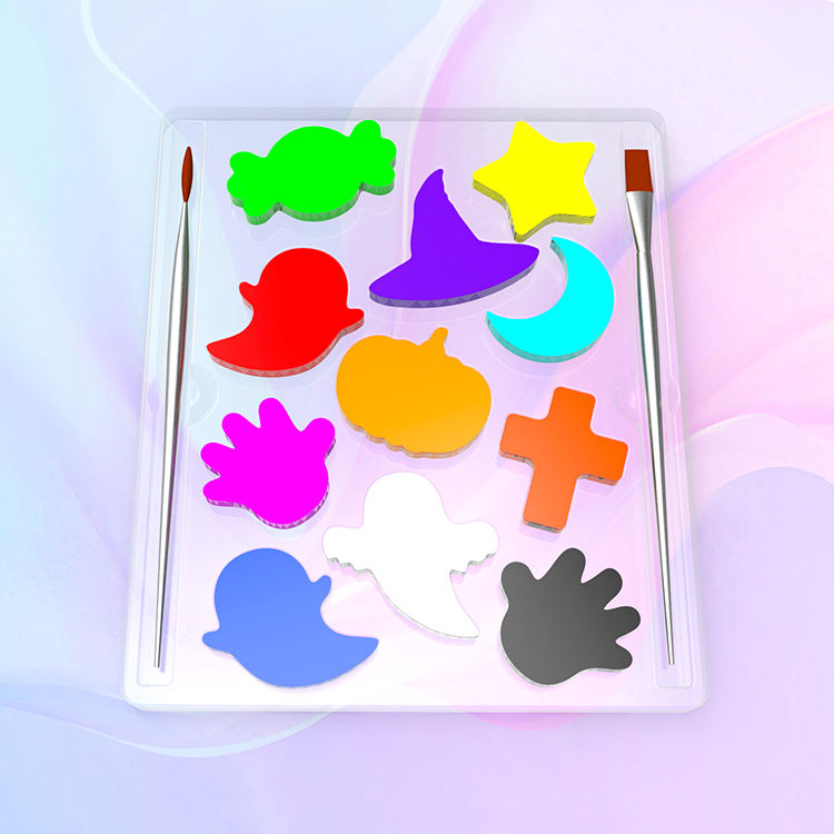 Kit de Pintura Facial de Halloween Activada por Agua, Paleta de Pintura Facial de Fantasma para Cosplay con Plantillas