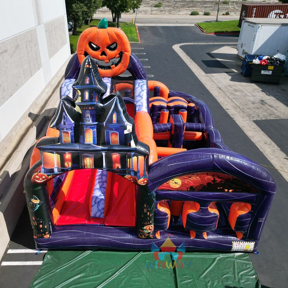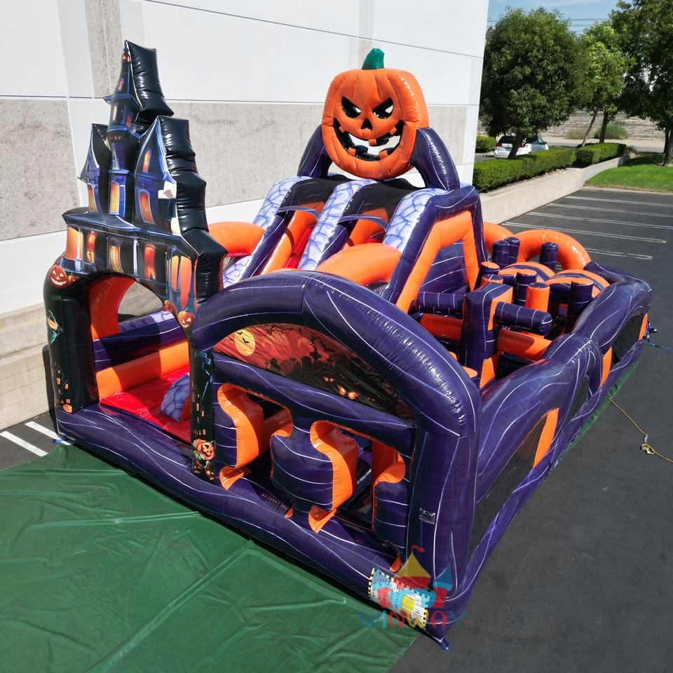 Carrera de obstáculos inflable de Halloween Diseño de cabeza de calabaza Fiesta de grado comercial para eventos al aire libre Festivales Carnavales