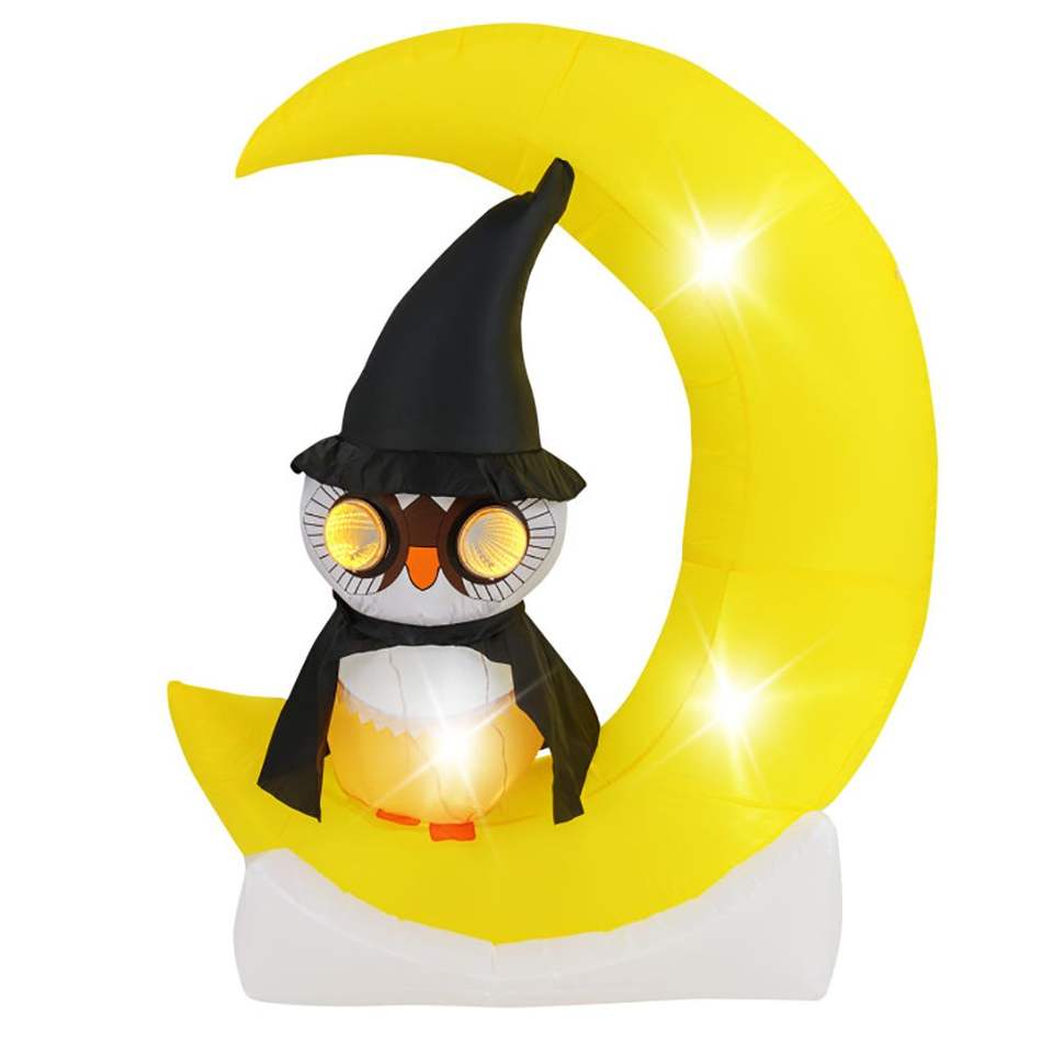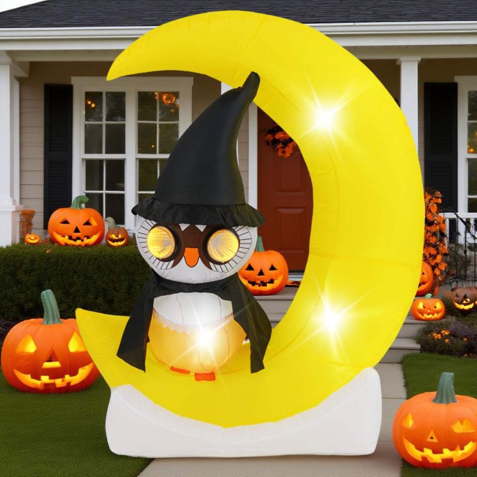 Búho Inflable con Luces LED de Halloween sobre la Luna, Decoración Grande de Luna y Búho Mago para Exteriores, Decoraciones de Jardín para Días Festivos