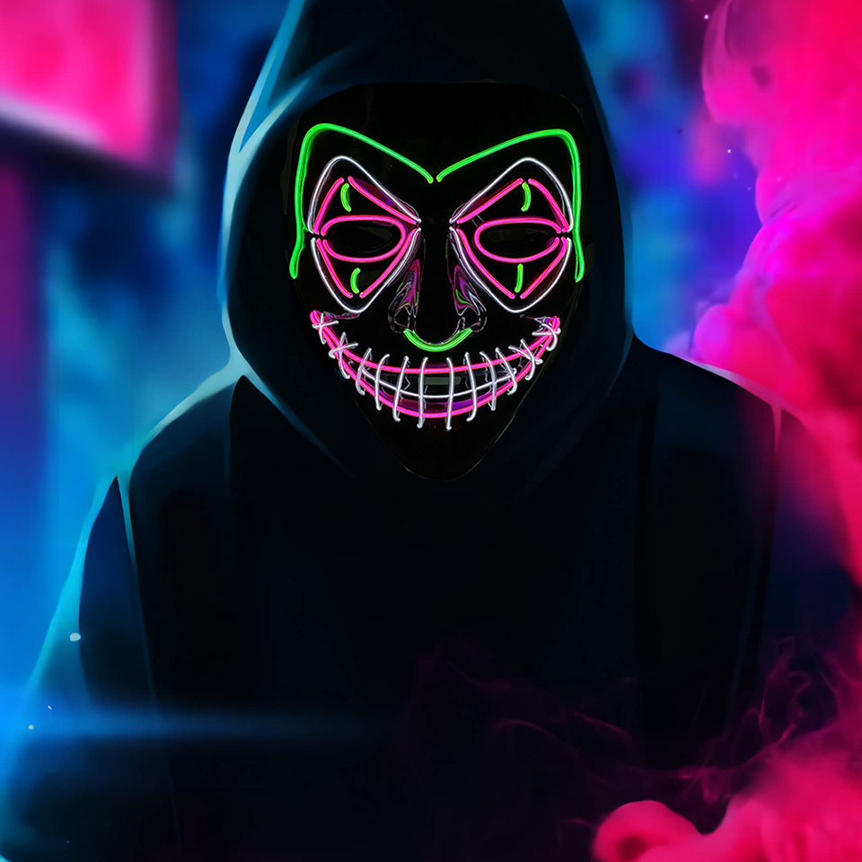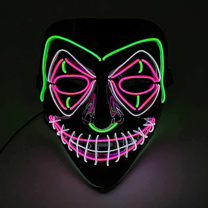 Halloween LED Neon Light-Up Full Face Máscara que brilla intensamente Disfraz de cosplay de fantasma en forma de purga para mujeres y hombres Decoraciones de fiesta