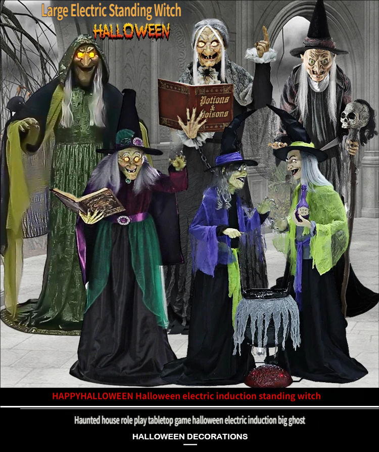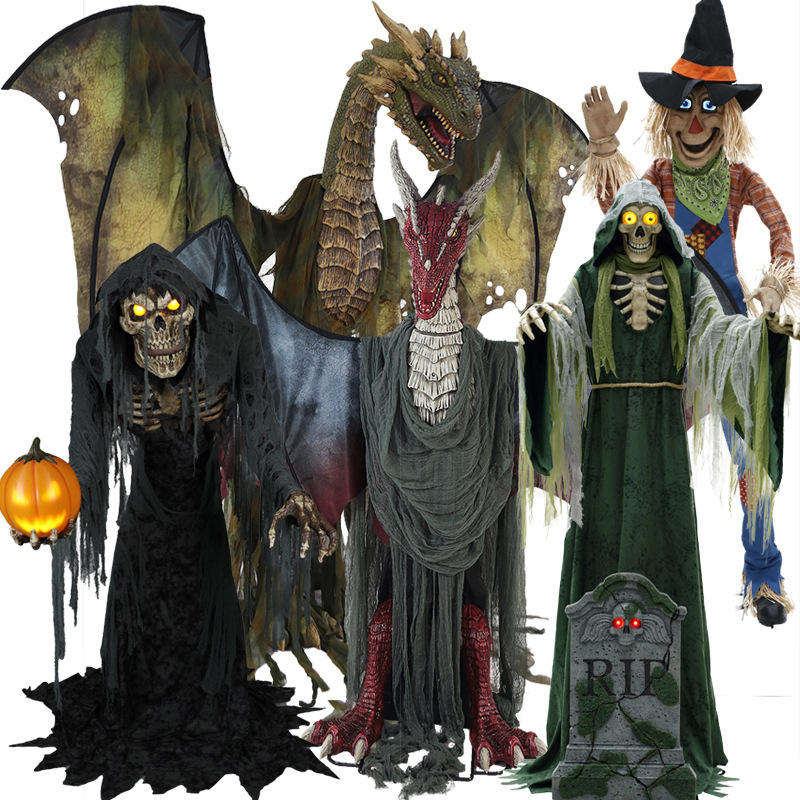 Colección de Accesorios de Terror Animados Grandes para Halloween, Decoración Eléctrica de Inducción para Casa Embrujada y Sala de Escape