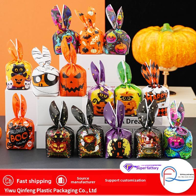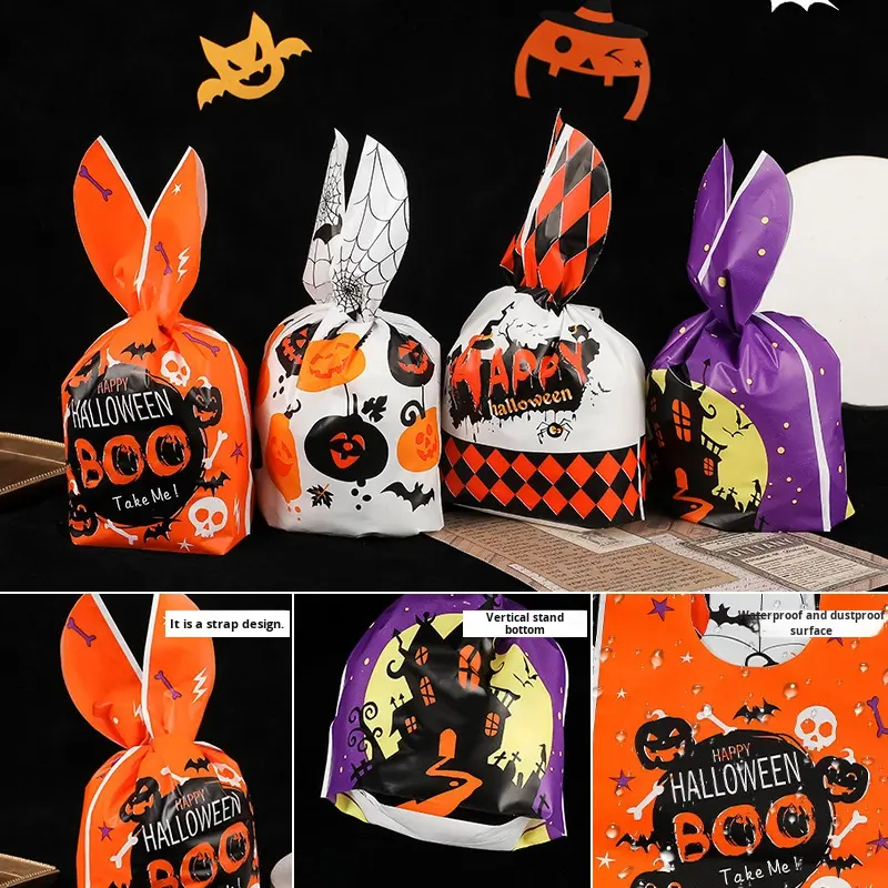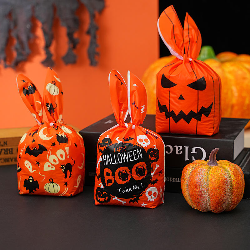 Bolsas de embalaje de Halloween, 50 piezas, Orejas de conejo, calabaza, dulces, aperitivos, galletas para hornear, bolsas de regalo, para almacenamiento de azúcar y gelatina