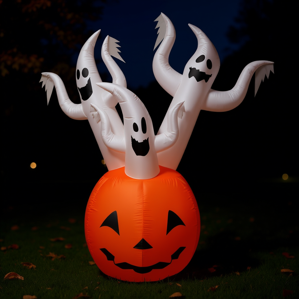 Decoración inflable de Halloween con forma de calabaza fantasma para exteriores de 5.9 pies con luces LED integradas para decoración de jardín, patio y césped.