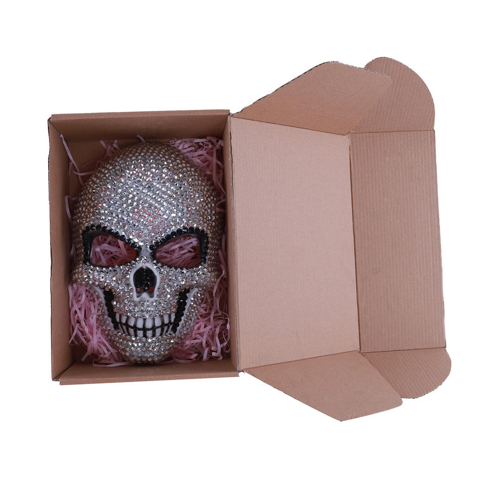 Máscara de calavera con diamantes de imitación para Halloween, con relleno rosa en caja de cartón, para decoración de fiestas