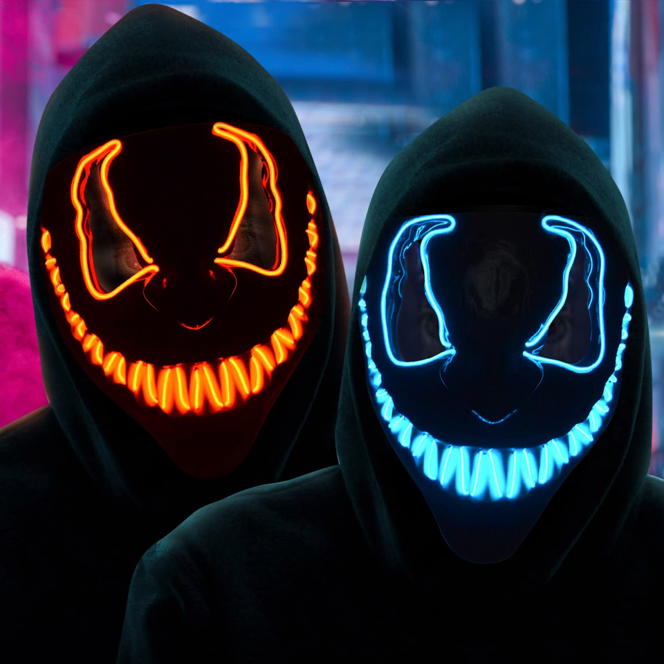 Máscara de Disfraz de Halloween, Máscara Facial con Luz Recargable de 3 Funciones para Hombres, Mujeres y Niños