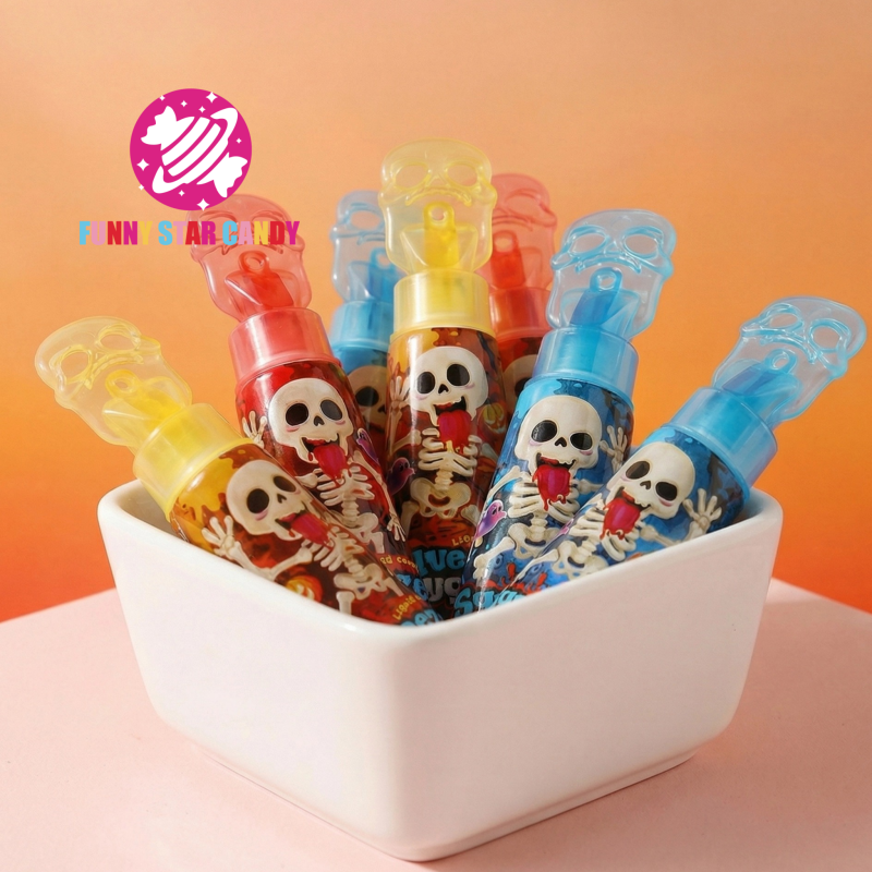 Caramelos de Halloween con Forma de Calavera, Pasta de Dientes, Mermelada, Dulces Personalizados, Ácidos, Dulces, Afrutados, Salsa de Azúcar Exprimible, Caramelos Líquidos
