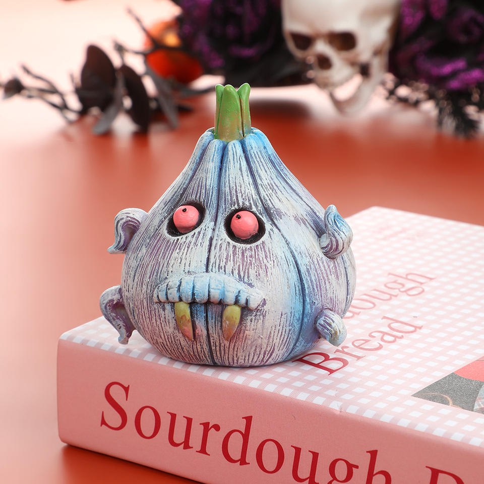 Vampiro de Halloween con escultura de resina de ajo para escritorio decoración del hogar Tema de terror ornamento
