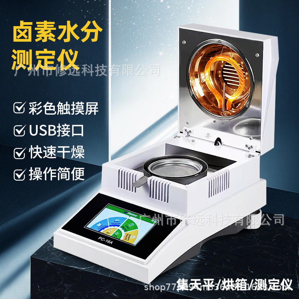 Analizador de Humedad Halógeno PC 10A 50-100g con Pantalla Táctil a Color para Detección Rápida de Granos, Productos Farmacéuticos y Té