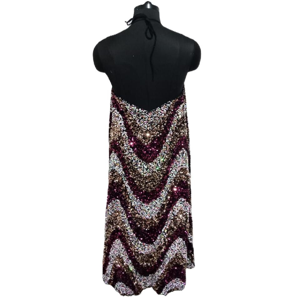 Vestido de Fiesta Largo con Cuello Halter, Diseño de Ondas, Lentejuelas Multicolores y Forro de Algodón para Damas