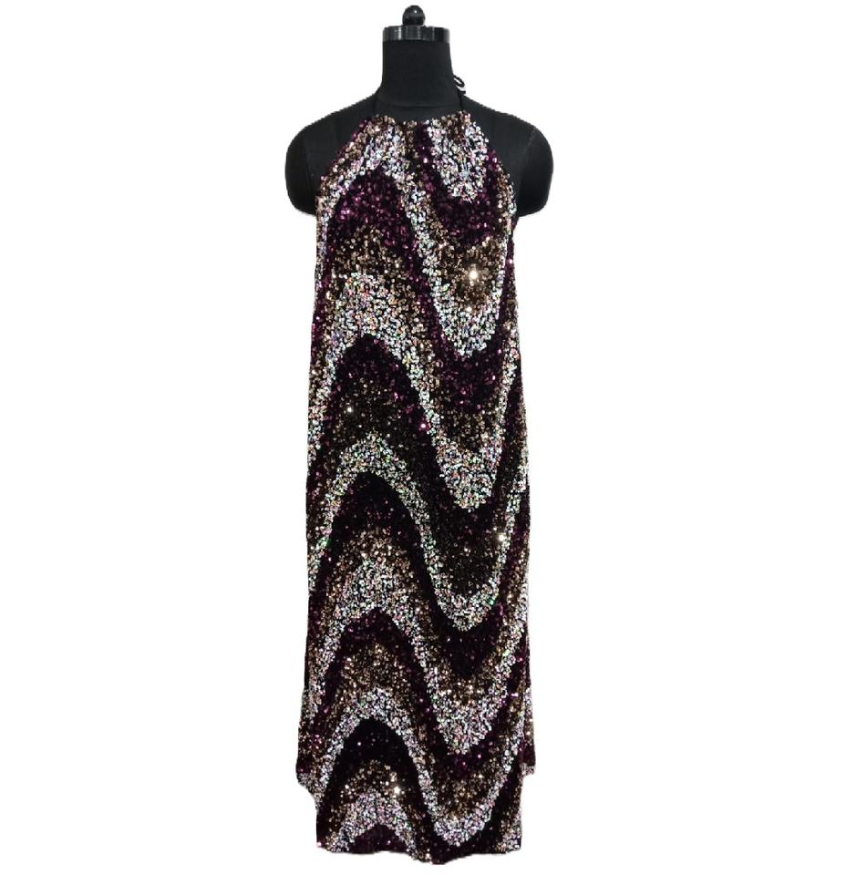 Cuello Halter Diseño ondulado lentejuelas multicolor Maxi algodón forrado vestido de fiesta para damas ropa de fiesta vestido de lentejuelas