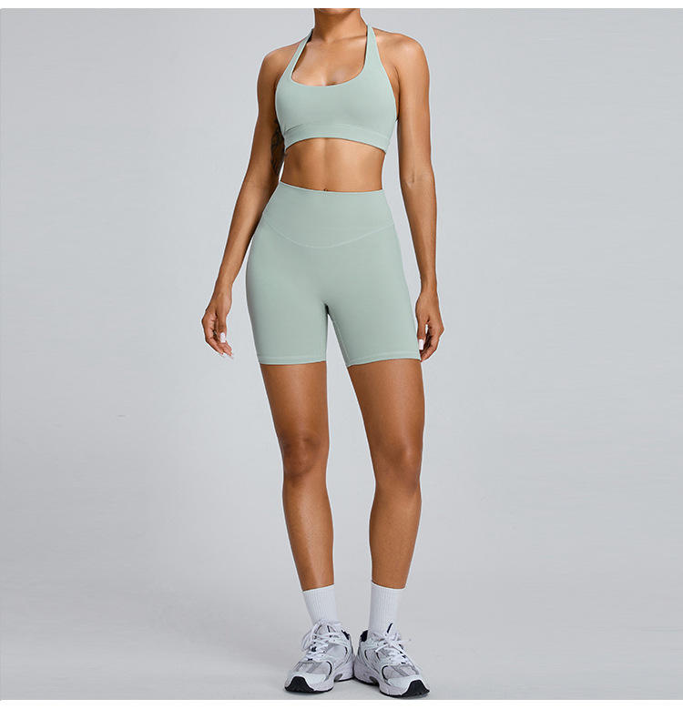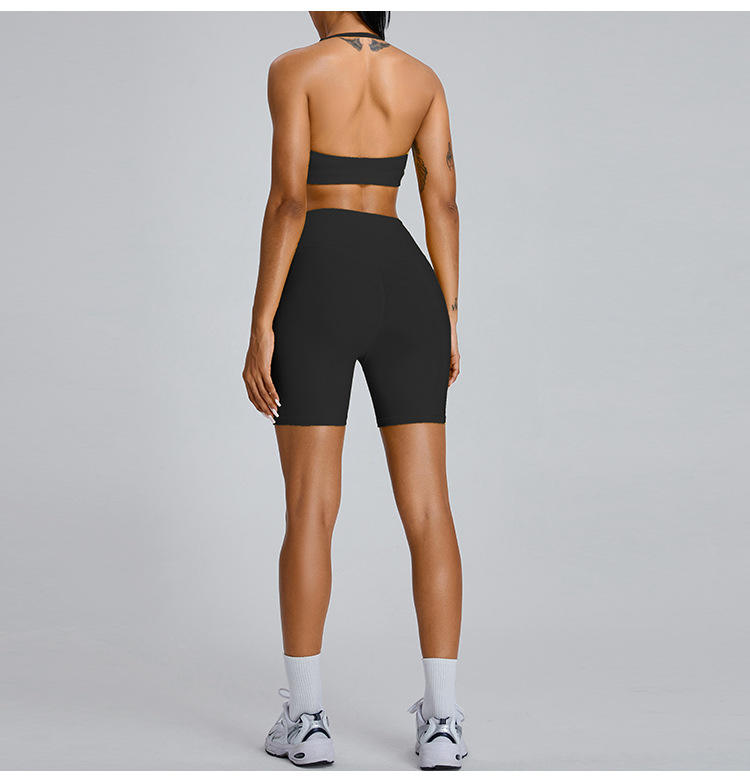 Conjunto Deportivo de Dos Piezas con Cuello Halter para Yoga, Levanta Glúteos, Transpirable, Top Deportivo de Cintura Alta y Pantalones Cortos de Ciclismo, Ropa Deportiva