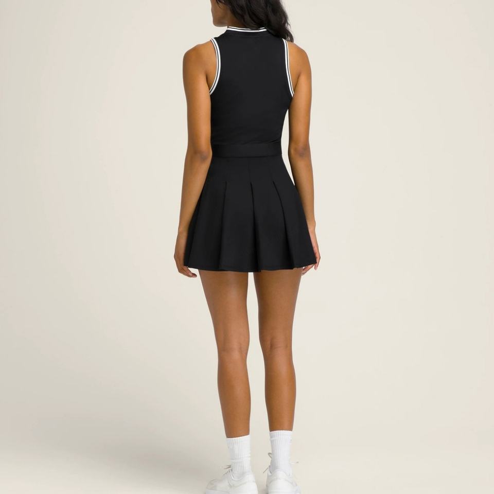 Vestido de tenis halter retro todo en uno con estampado floral, de secado rápido, sin cuello y plisado, al por mayor