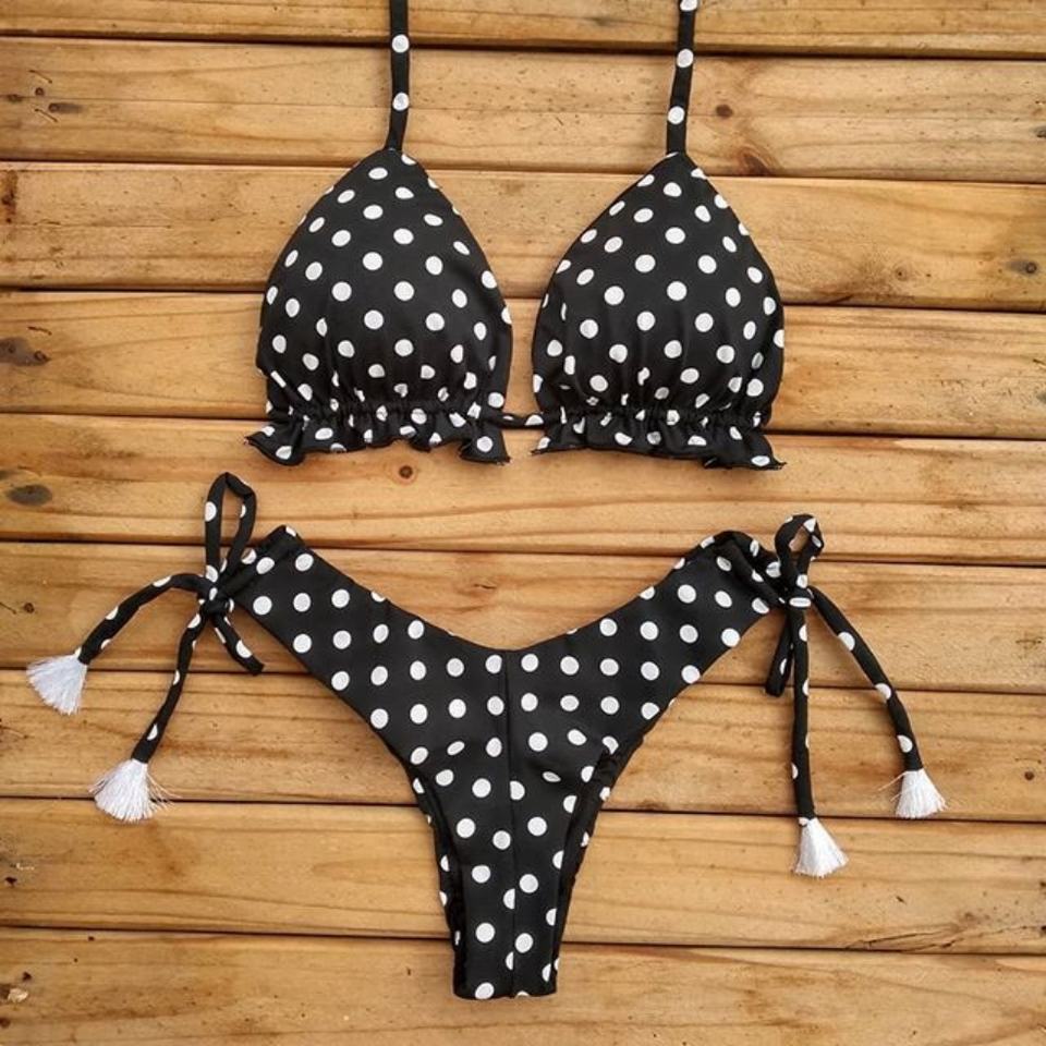 Conjunto de Bikini de Dos Piezas con Tirantes Triangulares, Push-Up, Tanga, Secado Rápido, Spandex/Poliéster, Sexy, Tallas Grandes