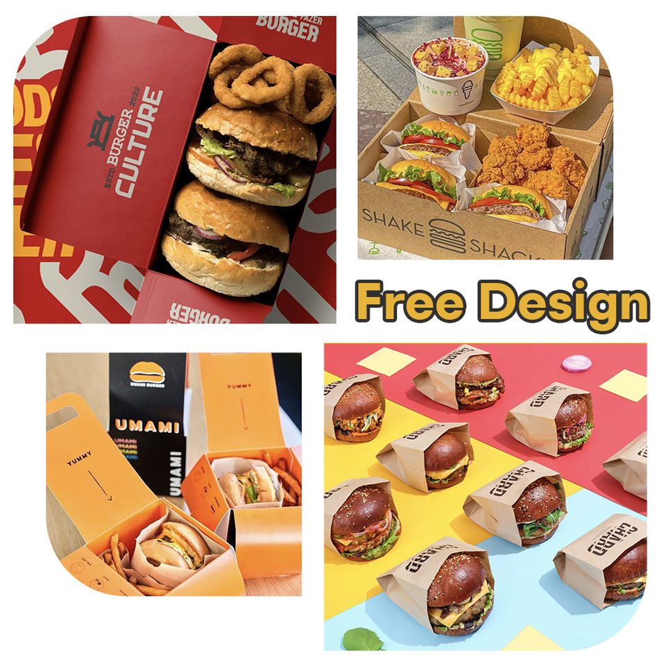 Cajas para Hamburguesas al por Mayor, Contenedor Resistente Desechable de Papel de Calidad Alimentaria para Suministro de Restaurantes