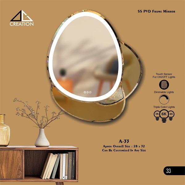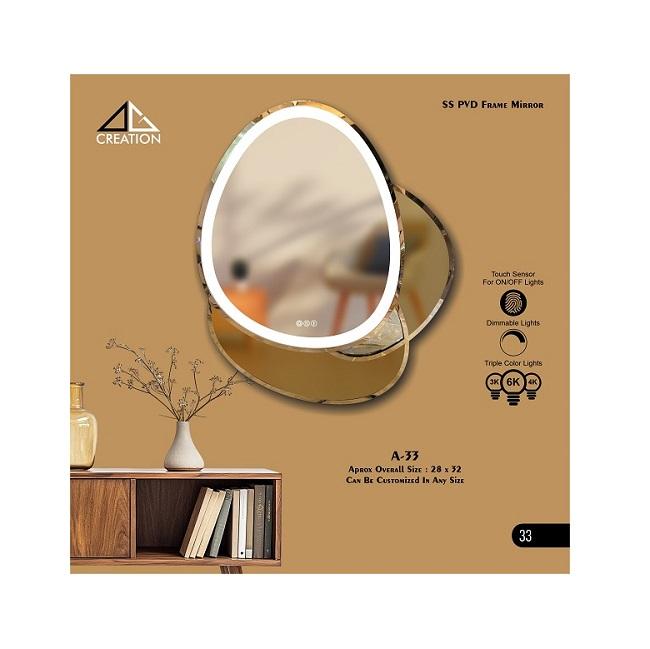 Marco de espejo con acabado de martillo en SS 304 con revestimiento de PVD proporciona un acento decorativo que combina Utilidad de belleza y alta calidad