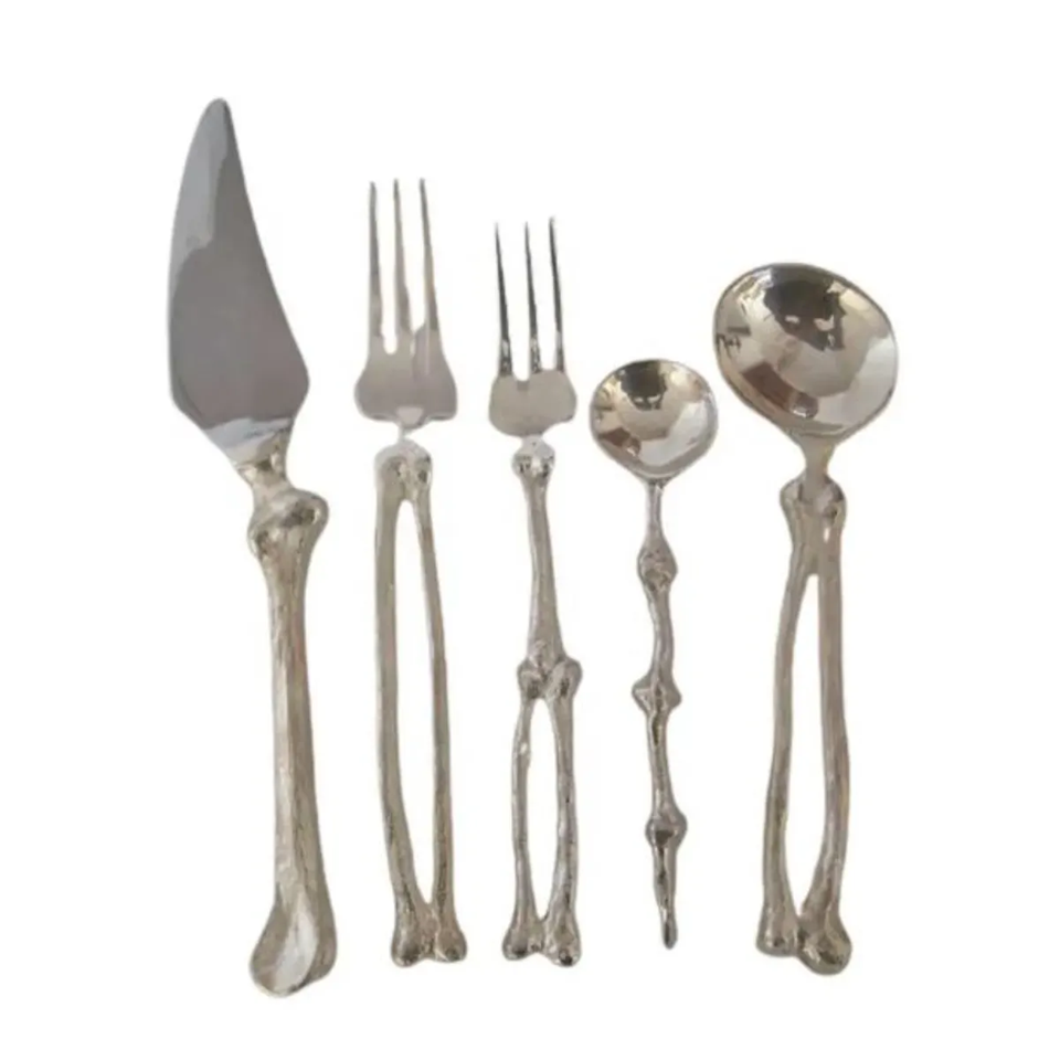 Juego de cubiertos de acero inoxidable con diseño de martillo, vajilla para restaurante, Cucharas, tenedores de acero con espejo y cubiertos de postre