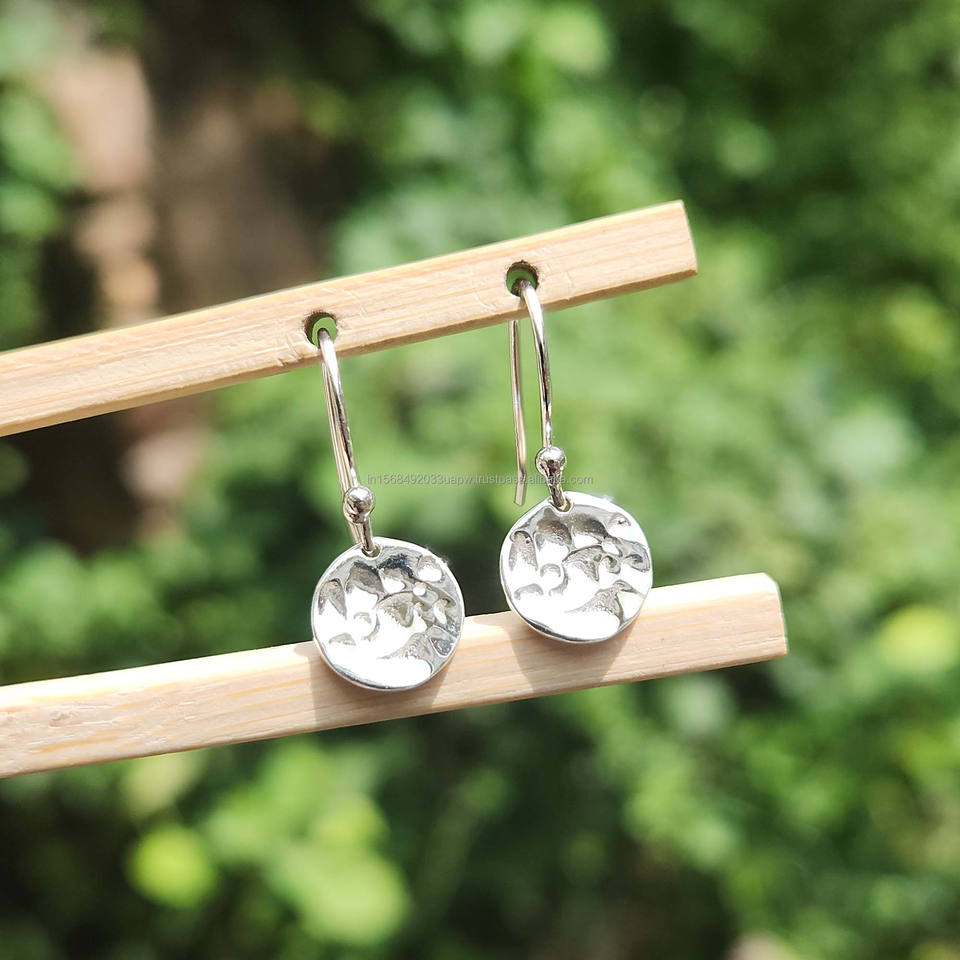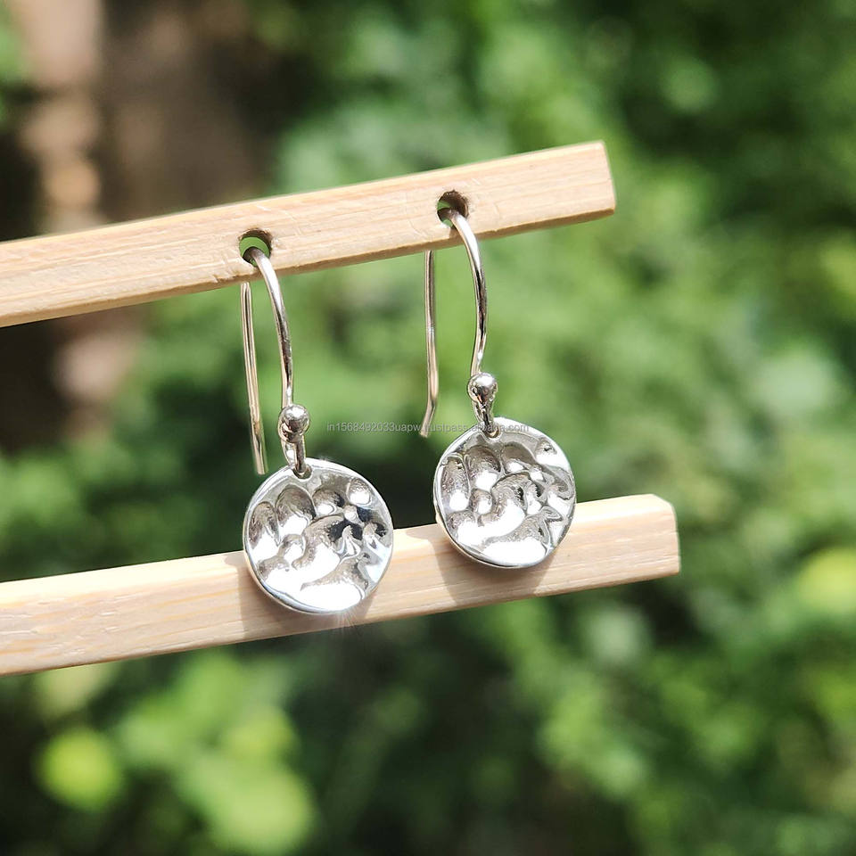 Martillado moneda 925 pendientes de plata esterlina cuelgan