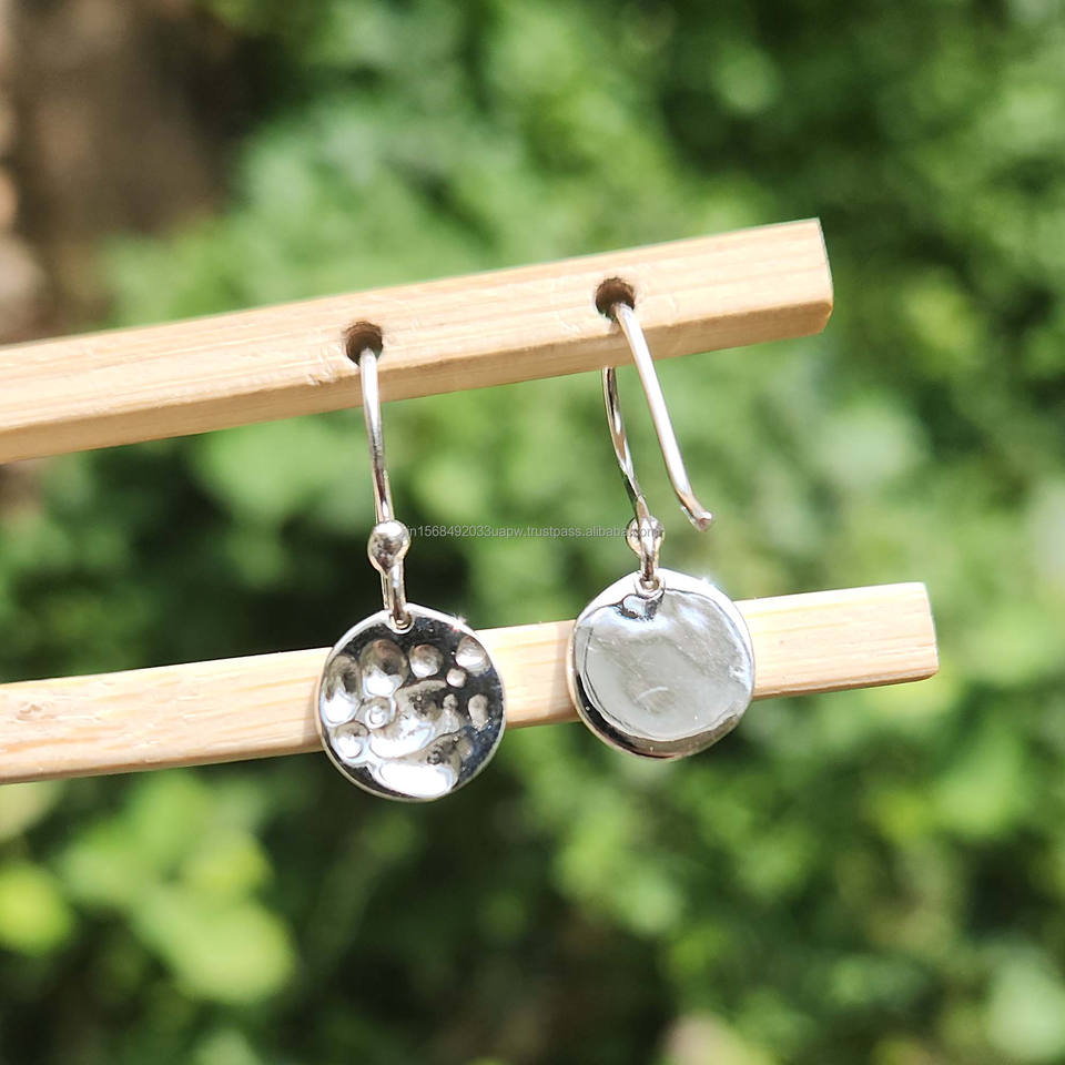 Pendientes colgantes de moneda martillada, diseño de disco redondo clásico, de 925 Ley Plata, joyería de piedra natal chapada en oro, venta al por mayor a granel