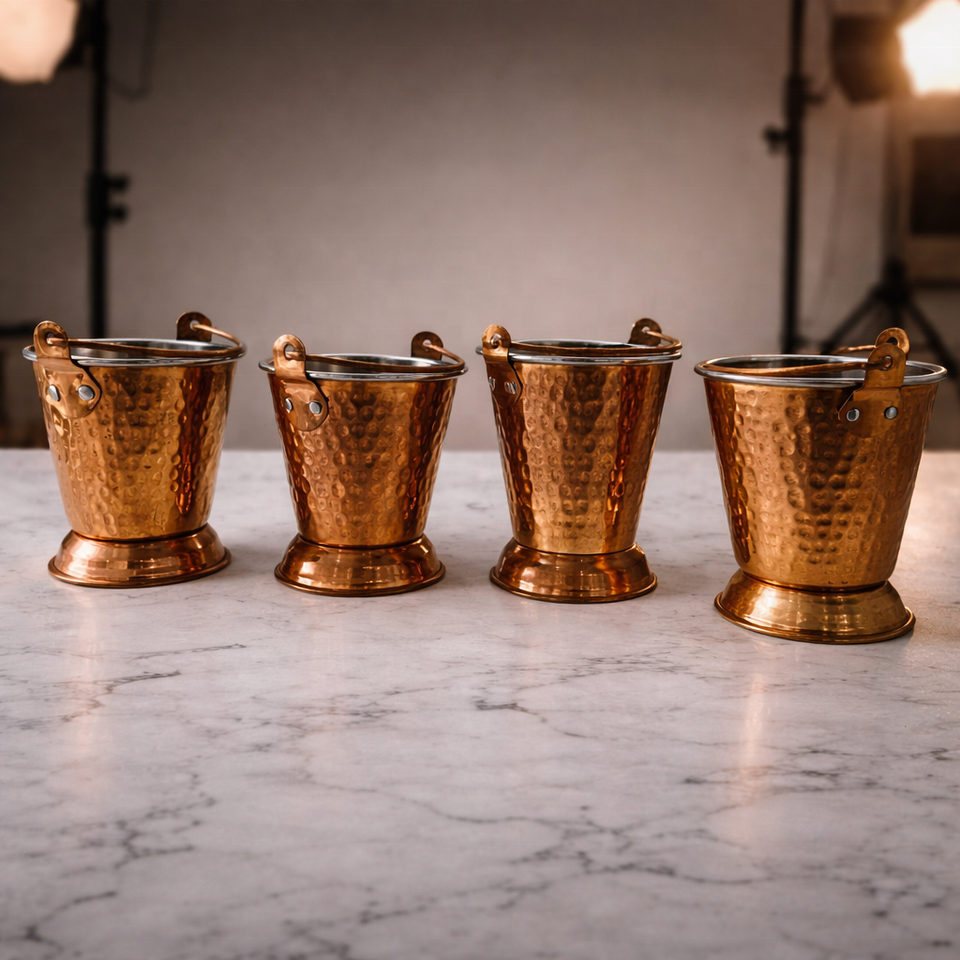 Juego de Cubos de Cobre Pulido y Martillado con Asa, Cubo Ecológico para Alimentos, Ideal para Restaurantes, Hoteles, Bares y Uso Doméstico