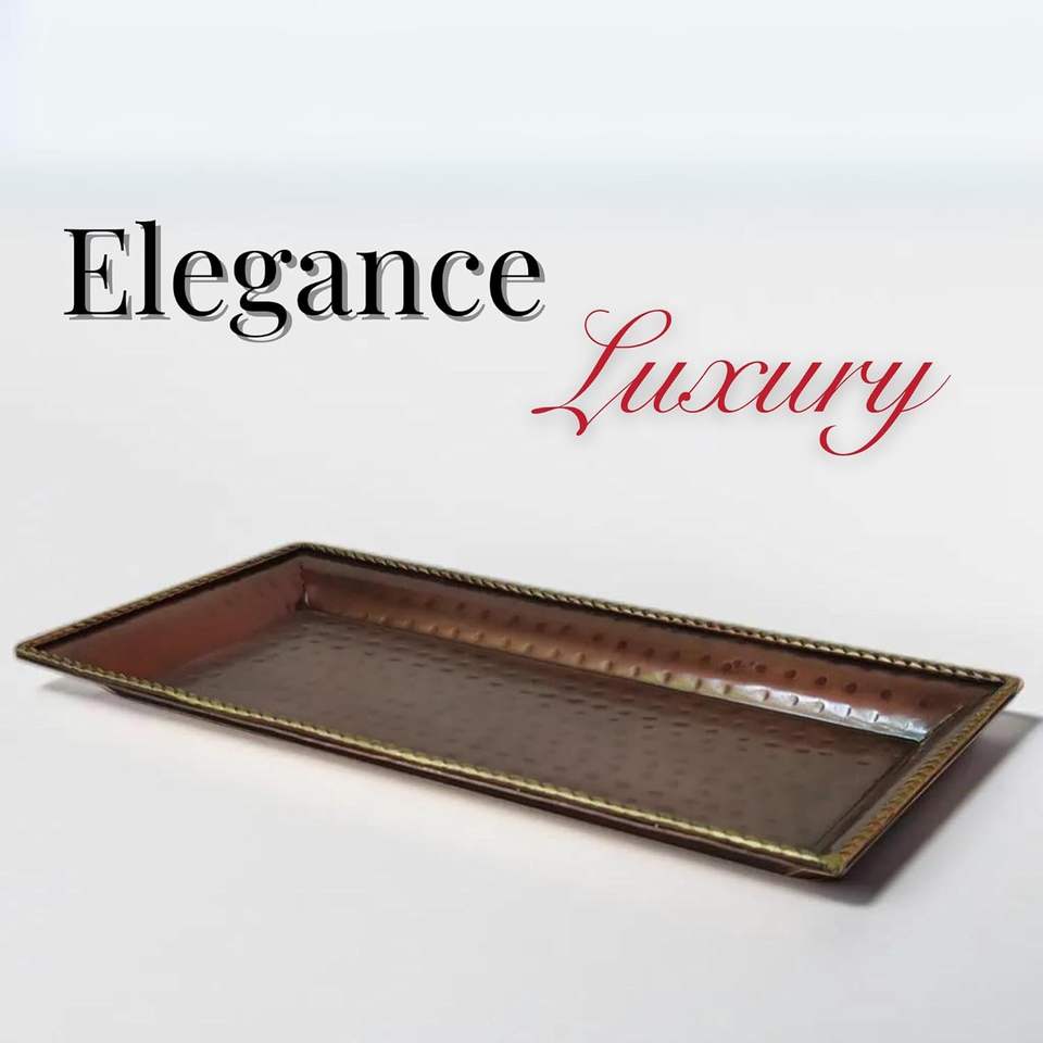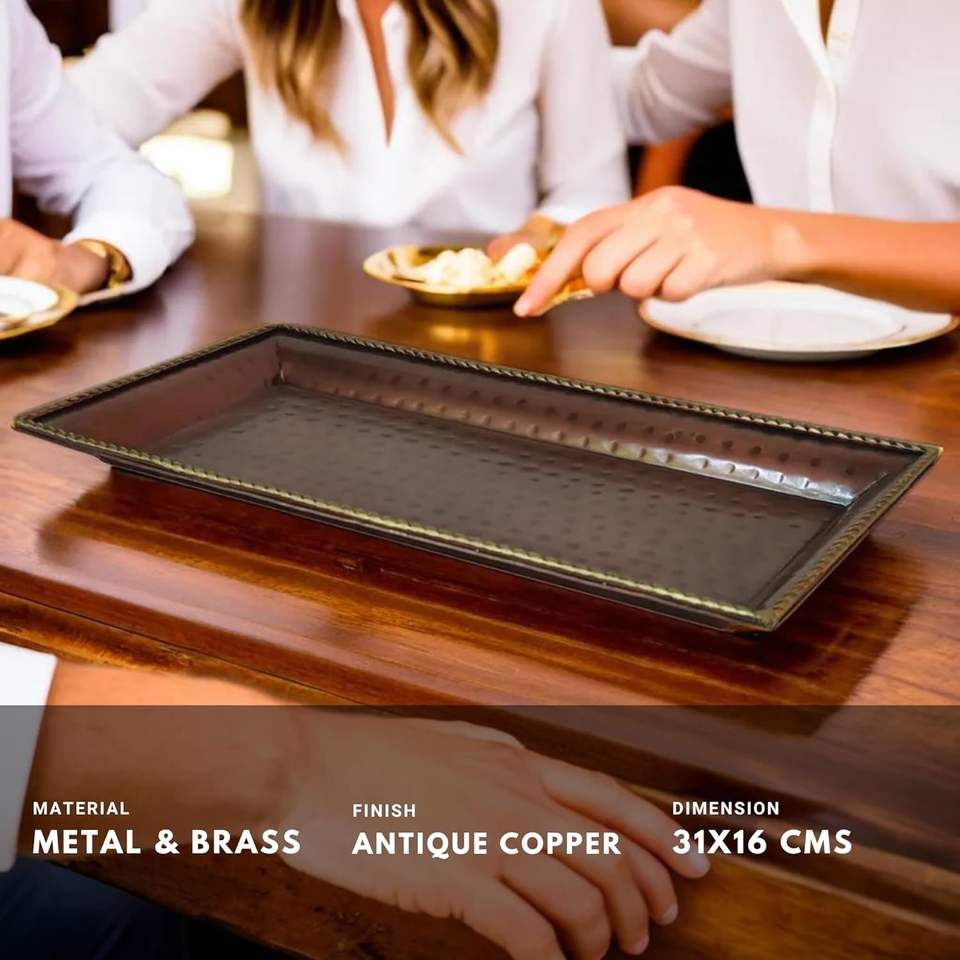 Bandeja Rectangular de Cobre Sólido para Servir, 12x6.3 Pulgadas, Plato de Metal para Aperitivos, Vajilla Plateada para Bodas, Fiestas y Eventos