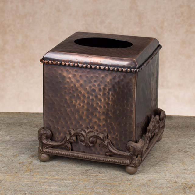 Soporte de caja de pañuelos de cobre martillado