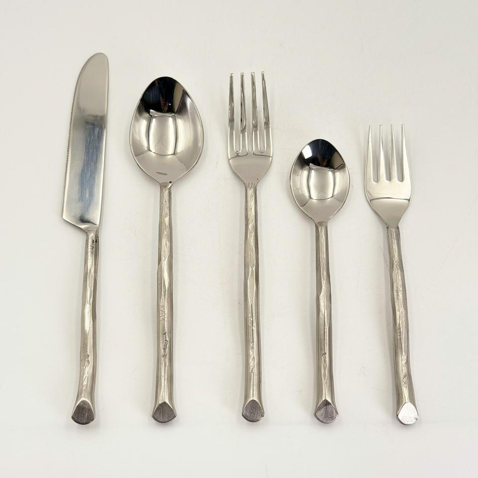 Juego de Cubiertos de Acero Inoxidable Martillado, Hecho a Mano, de Lujo, con Acabado Pulido Brillante, para Hogar y Restaurante, Juego de 5 Piezas