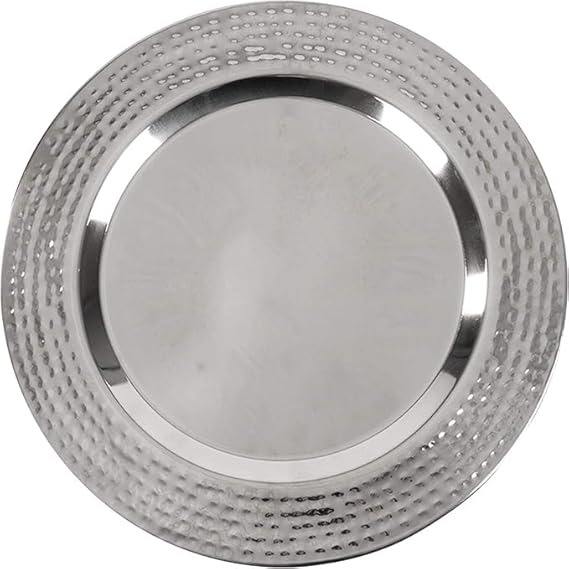 Placa de cargador de acero inoxidable con borde martillado Placas de cargador plateadas redondas de 13 pulgadas con borde texturizado