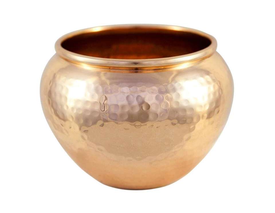 Jarrón pequeño de cobre macizo martillado para decoración del suelo del hogar