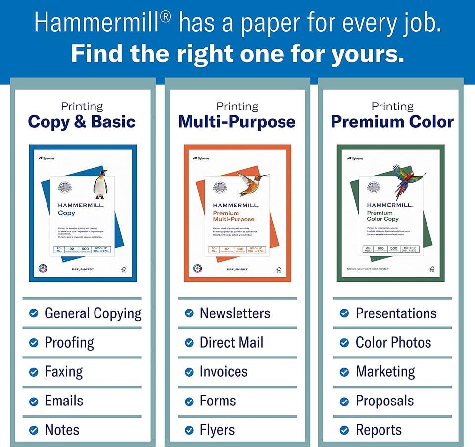 Papel para Copiar Hammermill A4 Premium Multiusos 80/70/75 lb 8.5 X 11-5 Resma (2,500 Hojas)-98-100% Superficie Lisa y Brillante Excelente