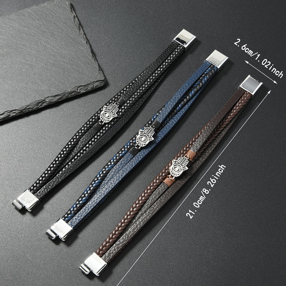 Pulsera de Cuero Trenzado Multicapa de la Mano de Fátima